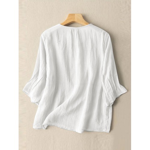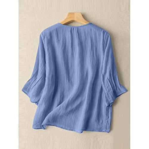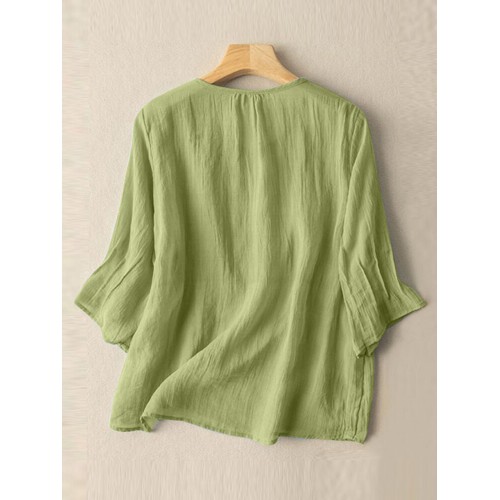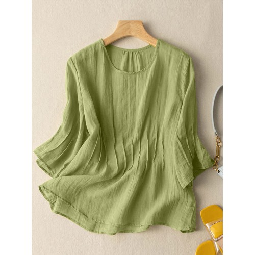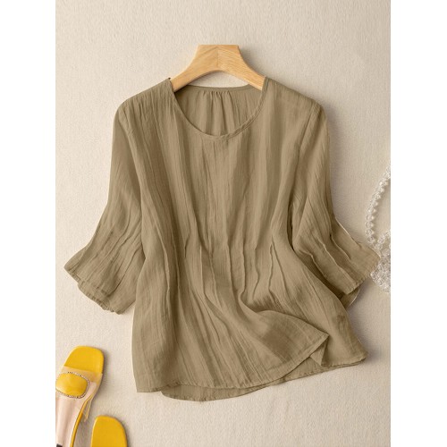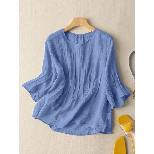 Solid Crew Neck Casual Women 3 4 Sleeve Blouse