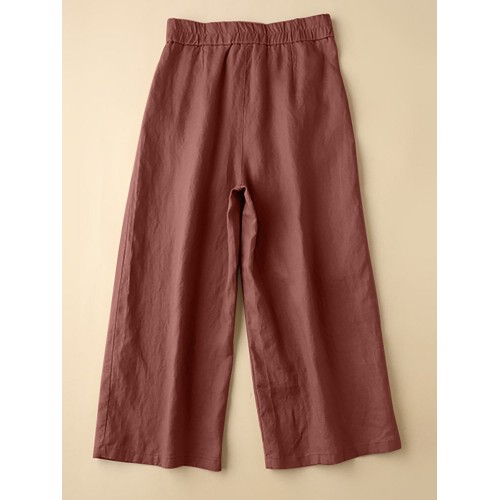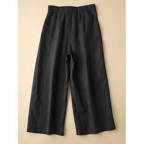 Solid Pocket Zip Front Elastic Waist Straight Leg Pants