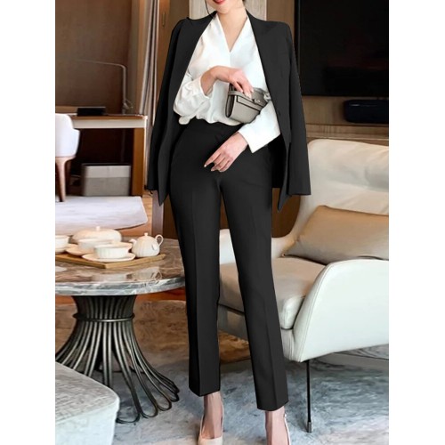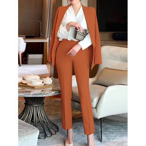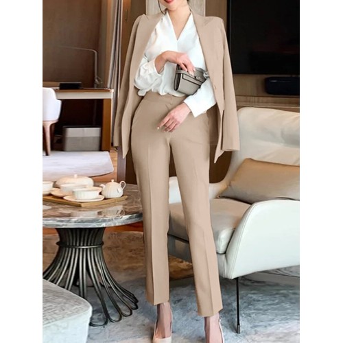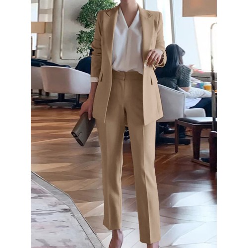 Solid Long Sleeve Lapel Two Pieces Suit For Women