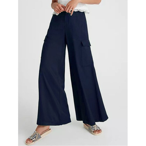 Solid Color Pocket Long Casual Loose Pants for Women