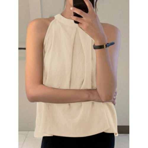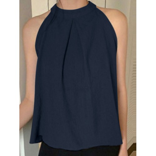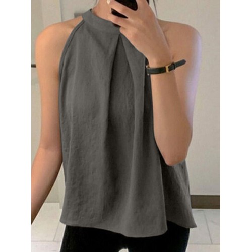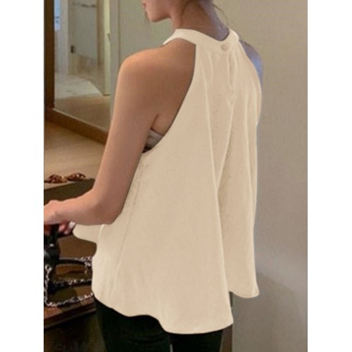 Women Solid Keyhole Back Sleeveless Halter Tank Top