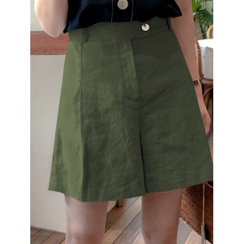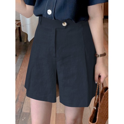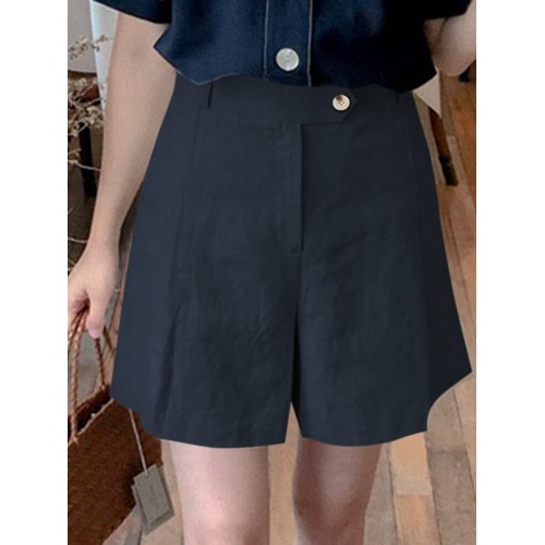 Women Solid Zip Loose Wide Leg Casual Shorts