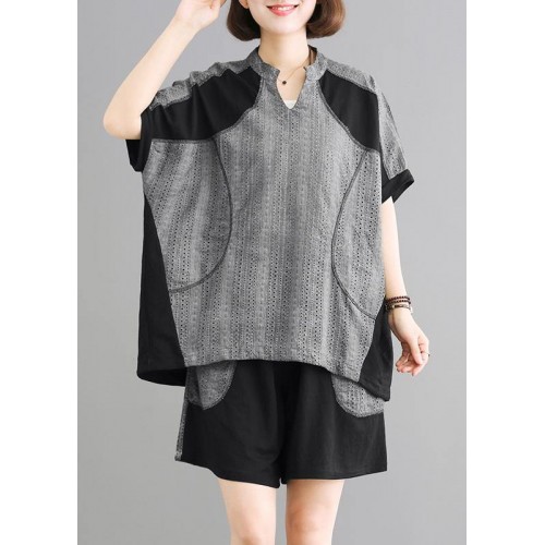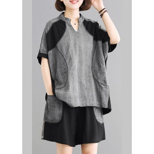 Elegant Cotton Long Shirts Vintage Spliced Cotton Linen Blouse And Shorts