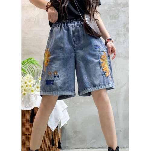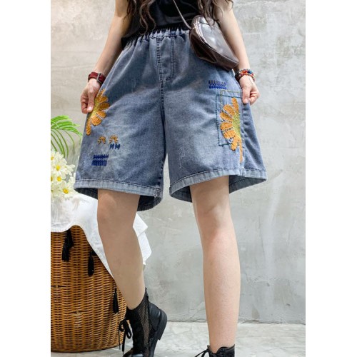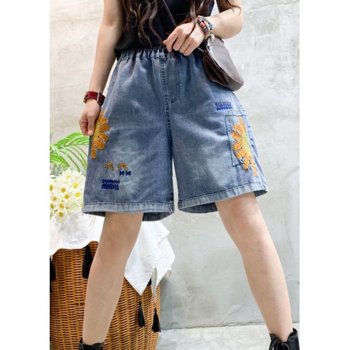 Beautiful Blue Embroideried denim shorts Summer