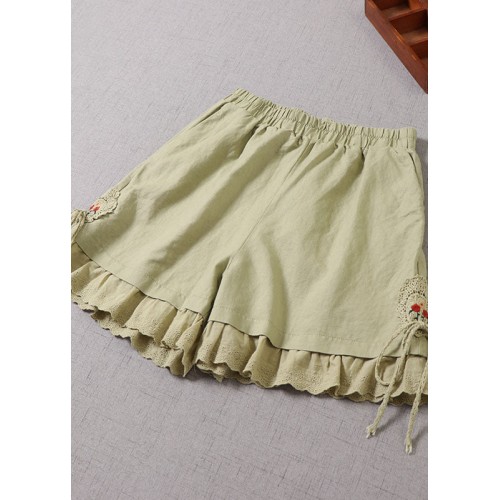 Fitted Green Embroideried Lace Patchwork hot pants Summer